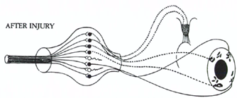 Tras la lesión del ganglio ciliar, la pupila agudamente denervada, se dilata y se desarrolla hipersensibilidad colinérgica del esfínter del iris, evidenciado mediante el incremento en el número de receptores ovalados (Figura 3), que desde el punto de vista clínico se documenta mediante la prueba de pilocarpina diluida al 0.012%, este proceso errático de reinervación, ocasiona una pupila que reacciona poco a la luz, mostrando una paresia segmentaria del iris (movimientos vermiformes)2,3.